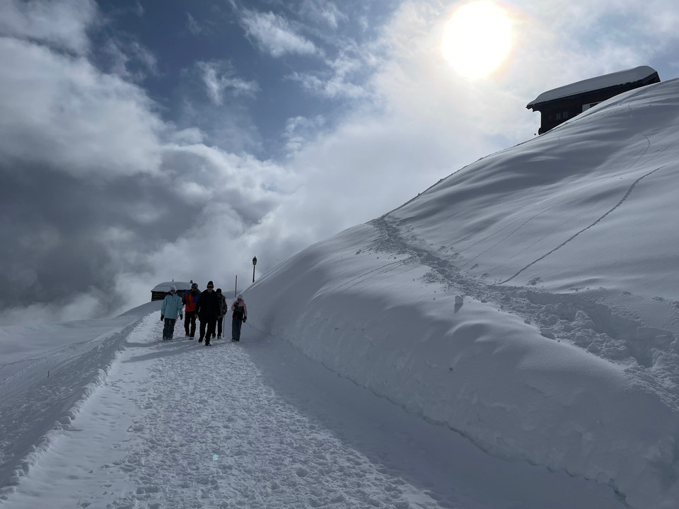 This is an easy and short 30-minute winter hike. From the Aletschbord there is a fantastic view of the Great Aletsch Glacier in its winter guise. The Great Aletsch Glacier is part of the UNESCO Jungfrau-Aletsch World Heritage Site. In terms of area, it is the largest and longest glacier in the Alps. The glacier is 22.75 kilometres long.