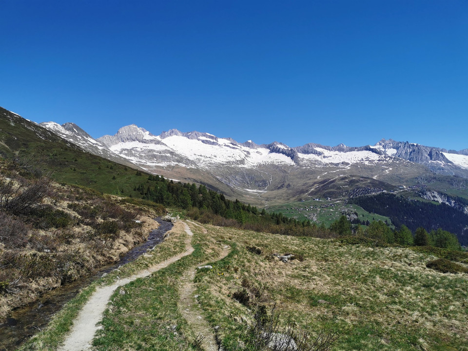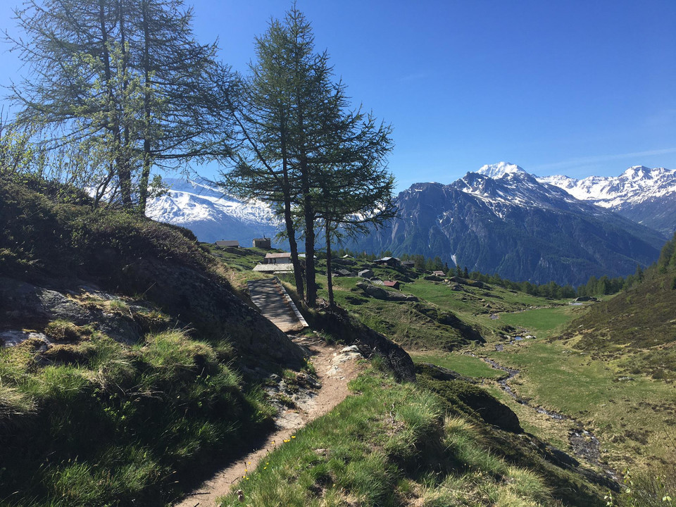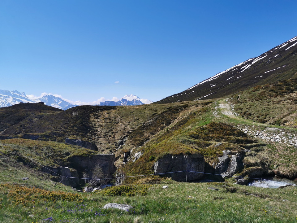 Depuis la station supérieure du téléphérique, on se rend d'abord à la Chiematte. Ceux qui le souhaitent peuvent prendre un petit rafraîchissement avant de poursuivre la randonnée. On traverse ensuite des prairies alpines jusqu'au Kelchbach, puis suit une courte montée jusqu'à la suone Nessjeri.