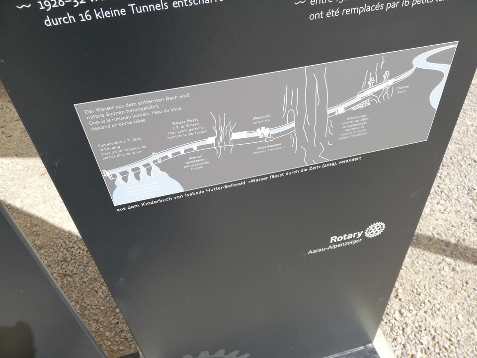 Le long de la suone Stigwasser, cette randonnée vous mène d'abord de Mund à la vallée de Gredetsch, puis via la suone Obersta à Birgisch. Les suones, qui passent parfois par des terrains spectaculaires et des sections rocheuses raides, sont captées dans la vallée de Gredetsch au ruisseau Mundbach, à environ 1300 m d'altitude. Elles servaient longtemps à l'irrigation des champs et des prairies à Mund et Birgisch.