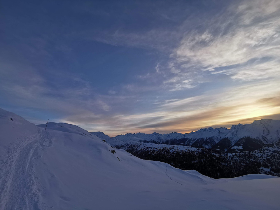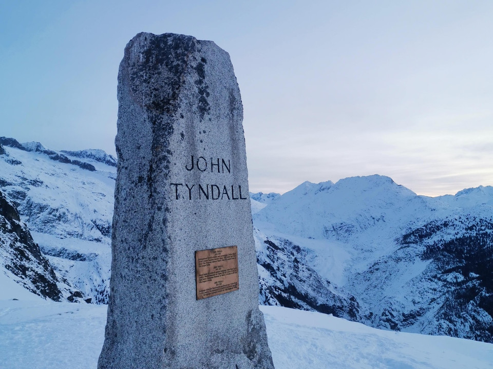 Le point de départ de ce sentier de raquettes est le sommet des remontées mécaniques de Belalp. Il vous conduit le long de sentiers de randonnée jusqu'à l'Aletschbord. Vous passerez par l'hôtel historique Belalp, où vous pourrez reprendre des forces avec une bonne tasse de chocolat chaud avant de grimper sur le Hohbiel et profiter de la vue sur le grand glacier d'Aletsch et les sommets environnants de quatre mille mètres d'altitude. L’hôtel de montagne a ouvert ses portes en 1858 et recevait des clients provenant principalement d'Angleterre. Parmi eux se trouvait l'alpiniste et naturaliste irlandais John Tyndall. Il a passé 44 étés à l'hôtel Belalp. En son honneur, la salle Tyndall est toujours conservée dans son état original. Et un peu plus haut au-dessus de l'hôtel Belalp se trouve le monument Tyndall qui lui est dédié. Le sentier de raquettes le longe et monte jusqu'au Hohbiel, une ascension plutôt difficile, mais sans risque. La descente vers le monument de Tyndall se fait par le même chemin. Un itinéraire panoramique très intéressant mène directement du monument à l'hôtel Belalp, puis sur la route qui rejoint le sommet des remontées mécaniques.