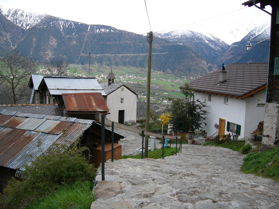 The hike begins in the picturesque old part of Naters, right next to the church. From there, follow the road towards the cemetery and Klosi. In Klosi, you will come to a clearly visible fork in the road, where you continue left. Follow the old mule track to the hamlet of Birchegga, where you turn right at the signpost. You will then reach the idyllic hamlet of Unner Moos, which, with its charming, small atmosphere, gives the impression that time has stood still here. In Moos, follow the road until just before the bus stop. Shortly before that, you have the option of turning right and walking through the underpass towards Hegdorn. You will also cross the hamlet of Hegdorn on the road. At the junction to the Trämel Chapel, you can turn right and take the path to "Äbugässji." After a short walk, turn left and reach Massegga. From here you have the choice of either hiking along the Rotten or via the red mile back to Naters.
