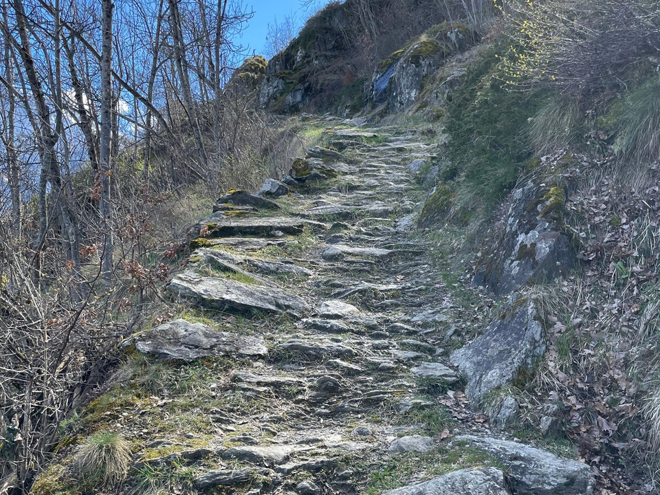 Bei der Kapelle im Trämel (Armenseelenkapelle) angekommen lohnt es sich eine Pause einzulegen und die Aussicht zu geniessen, bevor man sich auf den weiteren Weg macht. Zwischen der Kapelle Trämel und dem Weiler Geimen ist das Gebiet von einer trockenen und artenreichen Felsensteppe geprägt. Der Weg führt an den noch sichtbaren Felslöchern vorbei, wo während den Kriegsjahren Blei, Kalk, Quarz, Kristalle oder Talk abgebaut wurden.